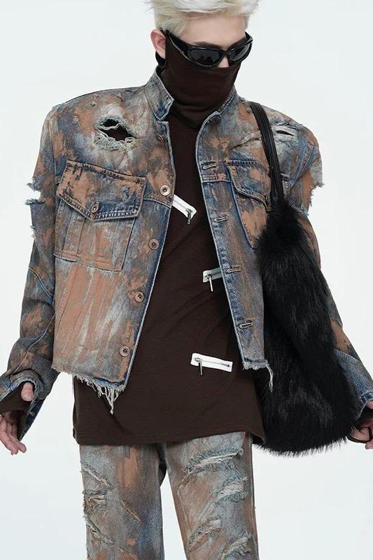Hole-ridden denim jacket