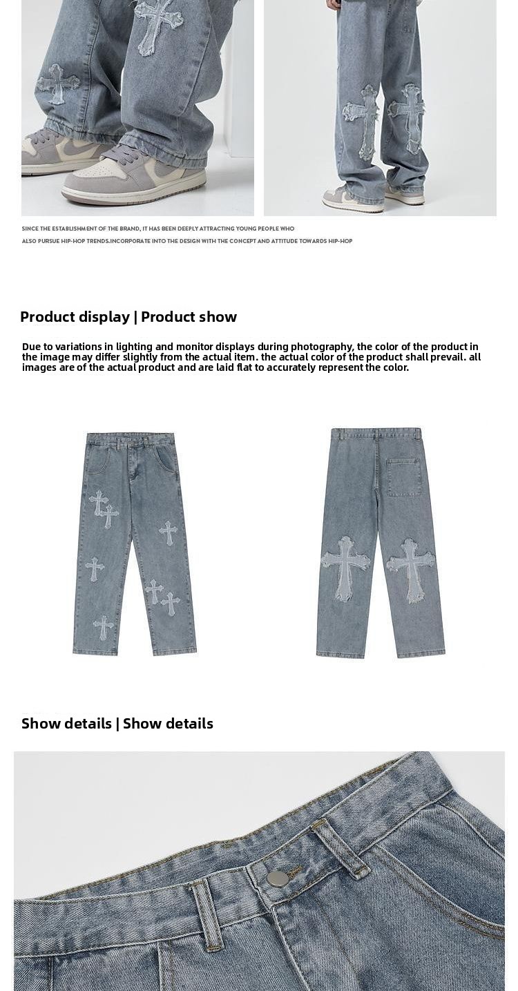 Cross applique design - Features distinctive cross patch detailing for a bold streetwear aesthetic