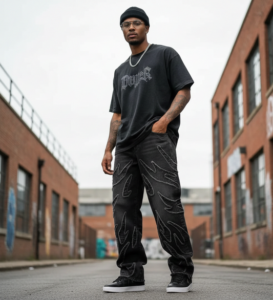 High-Street Graffiti Wide-Leg Jeans