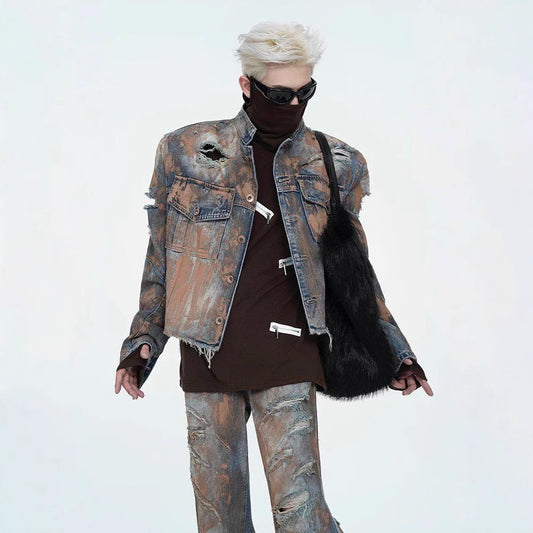 Hole-ridden denim jacket