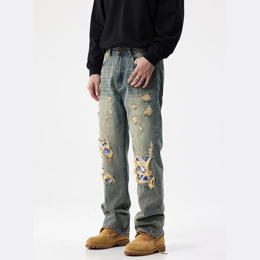 Vintage Deconstructed Wide-Leg Denim Jeans