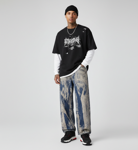 Vintage Deconstructed Wide-Leg Denim Jeans