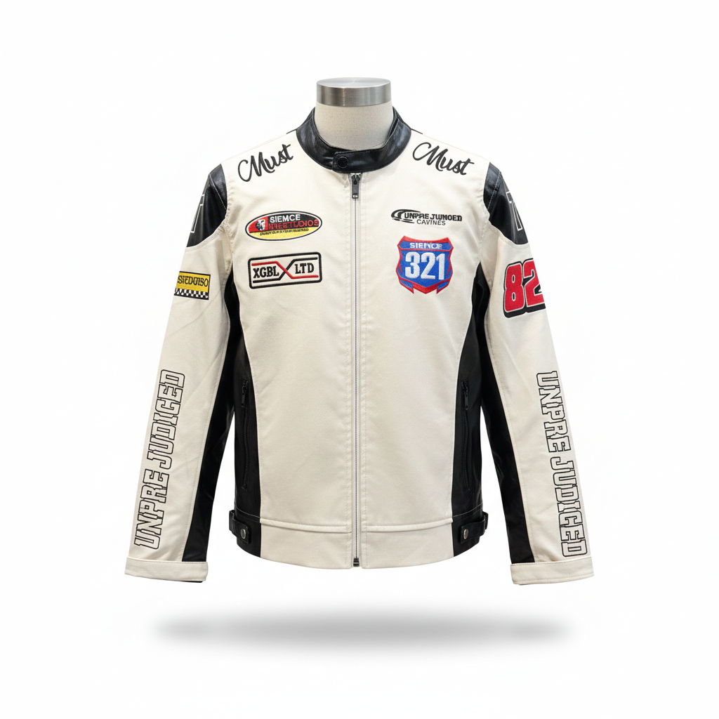 Pair with wide-leg jeans or cargos and sneakers for a clean racing-inspired street fit.